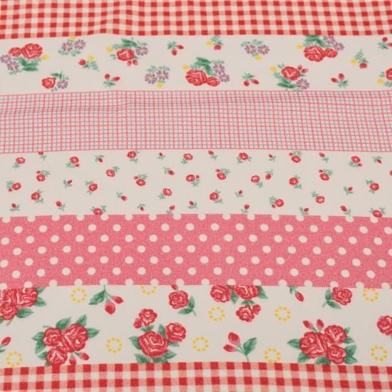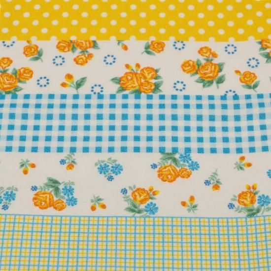 小さな花柄、ドット、チェック等を一枚の生地に描きました